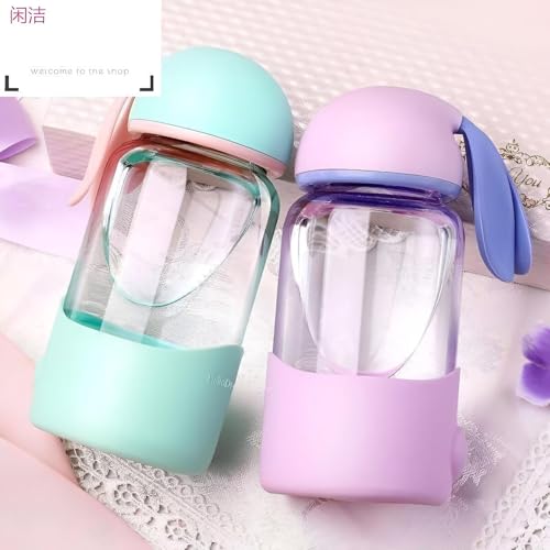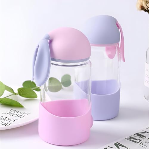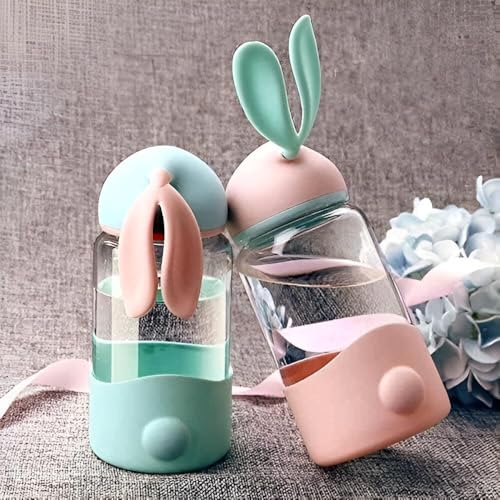 Generic - زجاجة ارنب - سعة 340 مل، الوان زاهية واذني ارنب ممتعة، غطاء سيليكون مانع للتسرب، مناسبة لجميع الاعمار، مثالية للرياضة والسفر