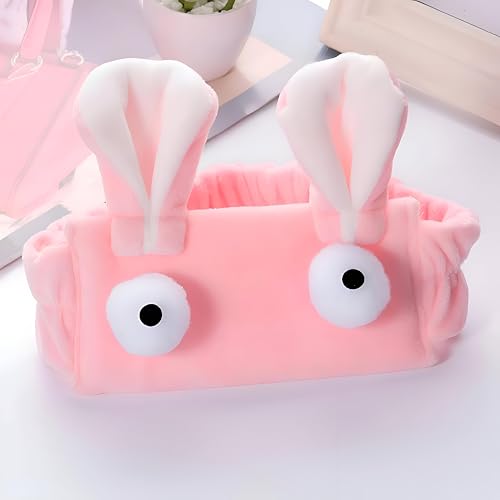Generic - شريط راس بتصميم ارنب - قماش مخملي ناعم باللونين الابيض والبينك، مثالي لايام المنتجعات الصحية وجلسات المكياج والحفاظ على الشعر بعيدًا مع إضافة لمسة لطيفة وأنيقة. (بينك)