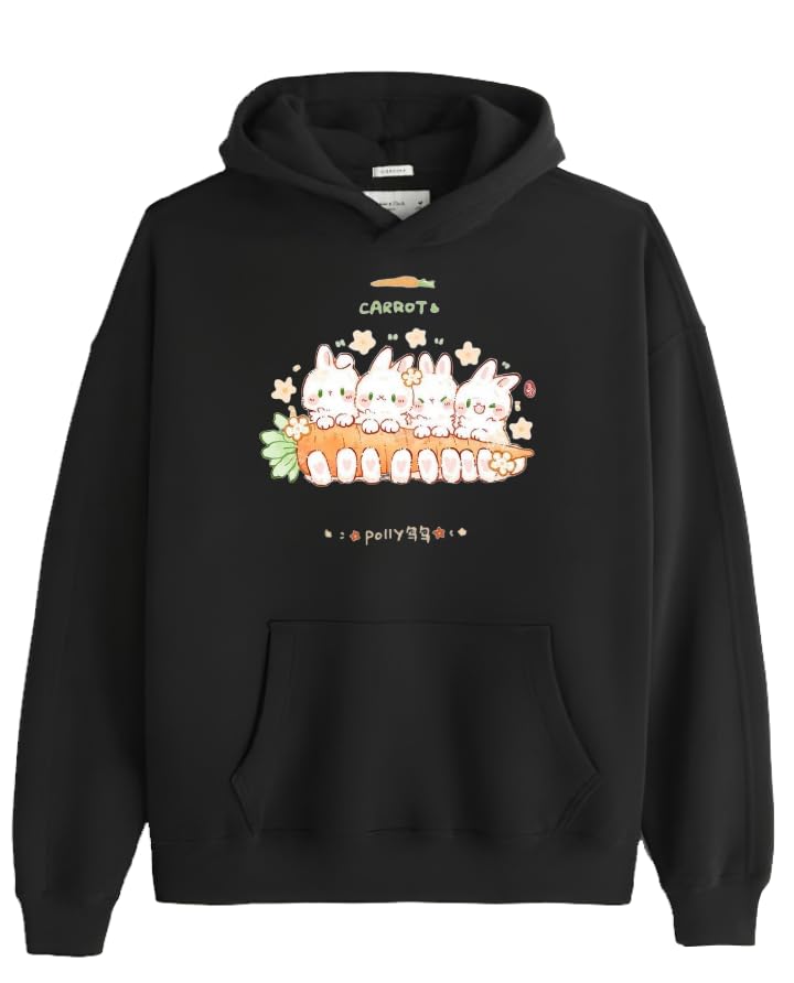 Generic - سويت شيرت بغطاء للرأس بتصميم أرنب كاواي لطيف بلون أسود مقاس 29