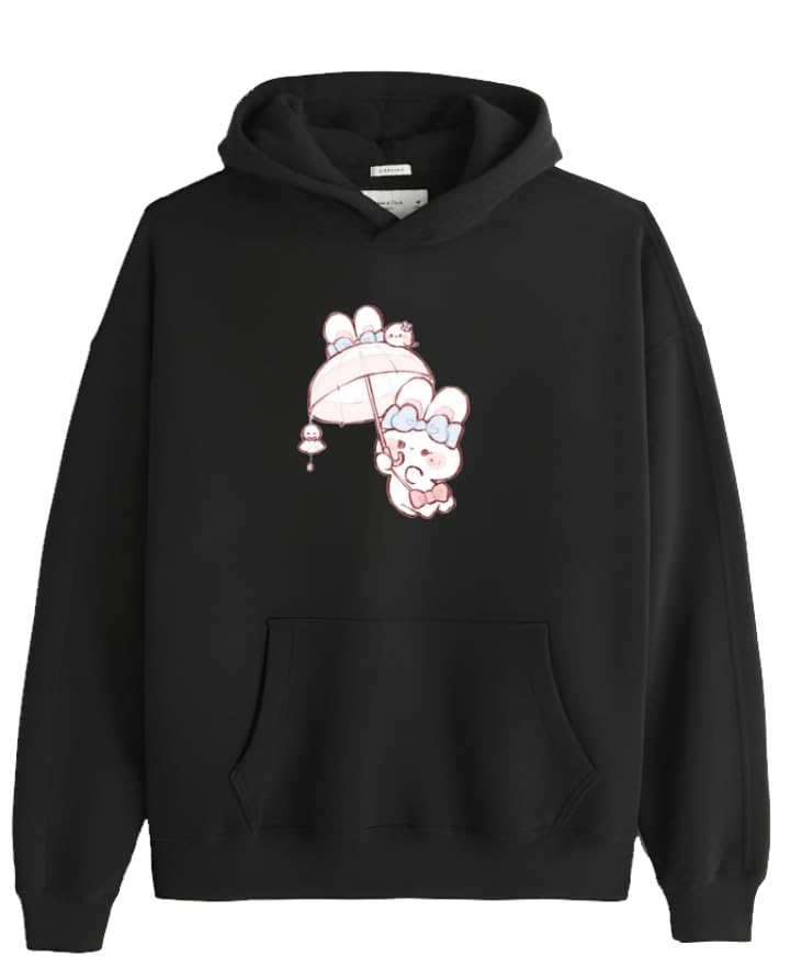 Generic - سويت شيرت بقلنسوة بتصميم أرنب كاواي لطيف باللون الأسود 51