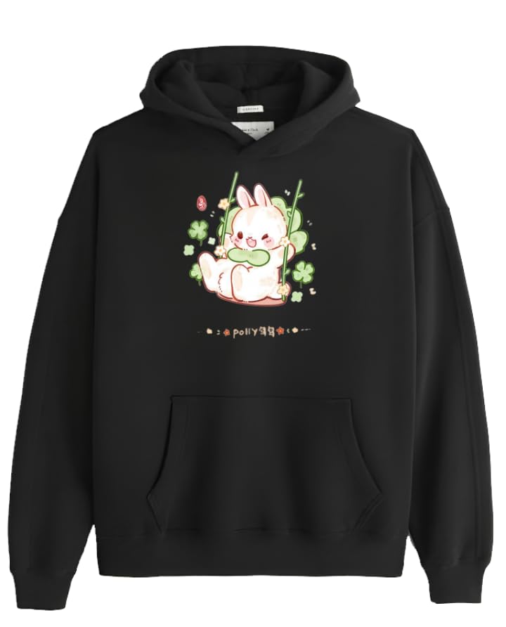Generic - سويت شيرت بقلنسوة أسود لطيف من أرنب كاواي 8