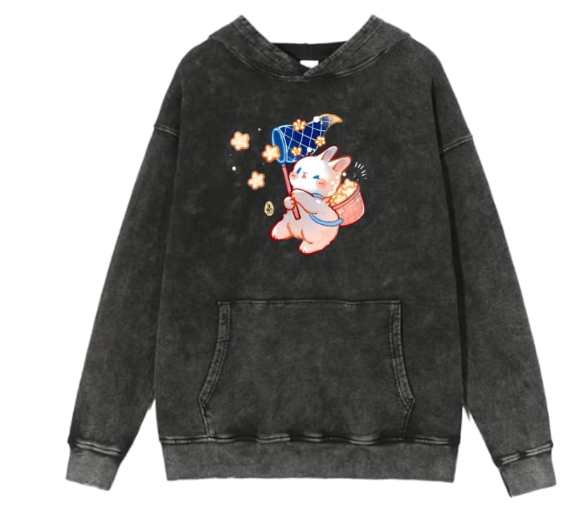 Generic - سويت شيرت بقلنسوة بتصميم أرنب لطيف كاواي بلون رمادي حمضي مقاس 11