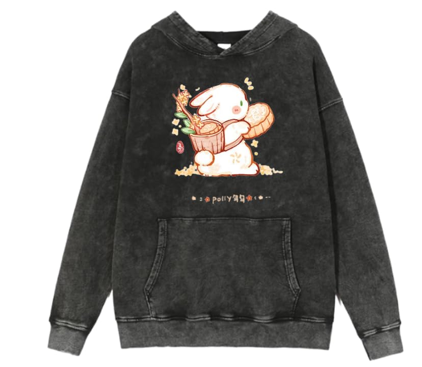 Generic - bunny rabbit cute kawai washed acid gray hoodie sweatshirt 9