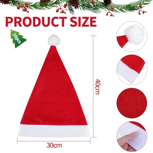 BUOAZR - مجموعة من 20 قبعة لعيد الميلاد من باوزر، قبعات سانتا من اللباد للجنسين قبعة حمراء للبالغين، تصميم فاخر للحفلات المكتبية