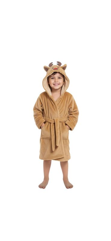Buongiorno - روب استحمام ناعم من القطن بجيوب أمامية وحزام خصر للأطفال من بونجيورنو - بيج