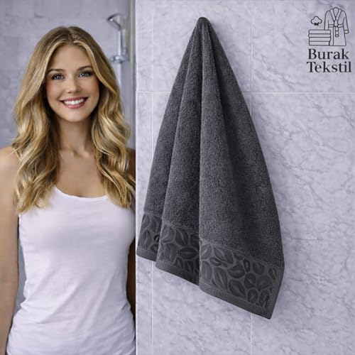 Burak Tekstil - مناشف حمام فاخرة من الكتان الناعم من بوراك، قطعة واحدة (160 × 90 سم)، مناشف قطنية 100%. (رمادي، 160 × 90 سم)