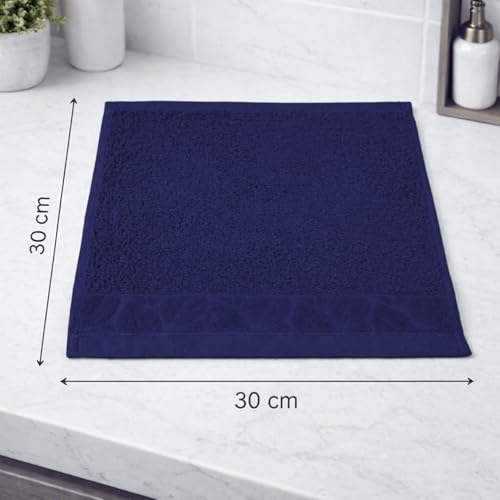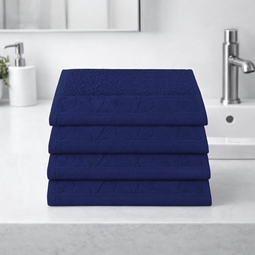 Burak Tekstil - مجموعة مناشف حمام قطنية من بوراك تيكستيل بحواف من ورق الجاكار، ناعمة ماصة ومقاومة للبهتان للحمام وصالة الالعاب الرياضية والفنادق والمنتجعات الصحية، عبوة من 4 قطع (ازرق كحلي، 4 مناشف وجه (30 × 30 سم))