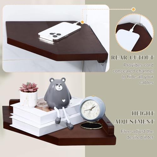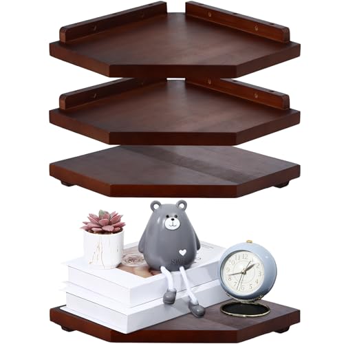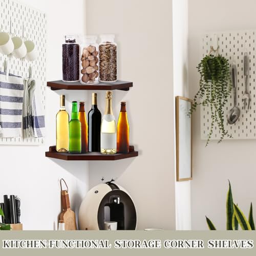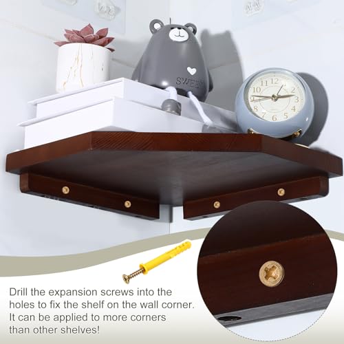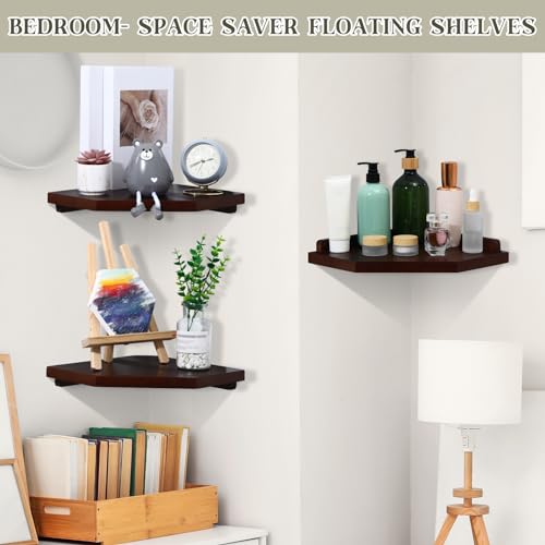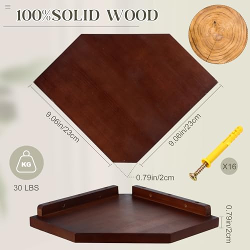 Burbell - 4 مجموعات من ارفف الزوايا الخشبية تثبت على الحائط، ارفف عائمة للزوايا، رف تخزين الزاوية، رف حائط زاوية منظم لغرفة النوم وغرفة المعيشة والحمام والمطبخ (بني داكن)