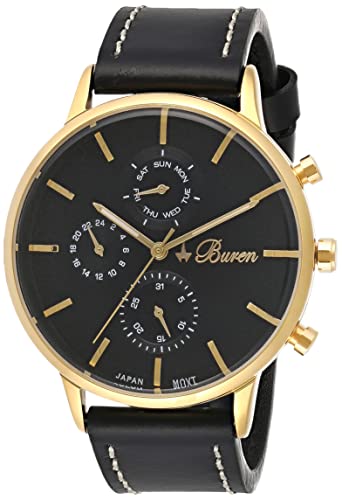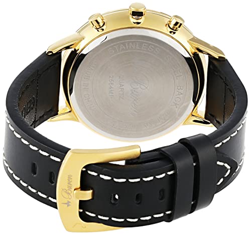 Buren - ساعة يد للرجال من بيرن مقاومة للماء بهيكل من الستانلس ستيل بشنبر ذهبي وساعة توقيت وعداد اليوم وعداد ثاني، بلونين اسود وذهبي، موديل BU2564MP