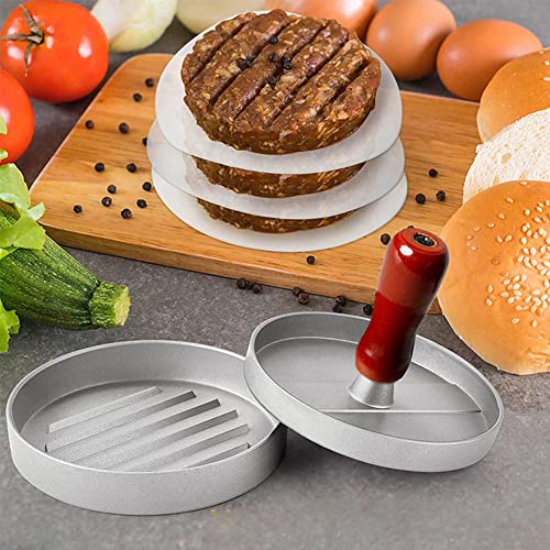 Helweet - مكبس برجر من الفولاذ المقاوم للصدأ مقاوم للالتصاق مع 100 ورقة زبدة لصنع البرجر والفطائر وكرات اللحم وقالب هامبرجر لعمل ستانلس ستيل