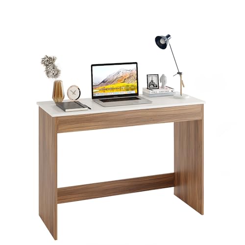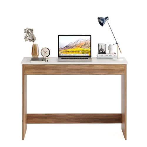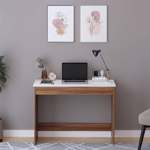 Burlyworth - طاولة دراسة خشبية هندسية من بورلي وورث، للكمبيوتر واللاب توب، مكتب دبليو اف اتش، طاولة الالعاب، 103 سم كبيرة (اكزوتيك تيك وايت)
