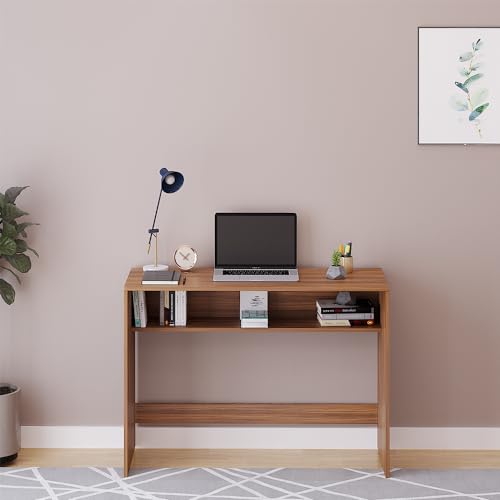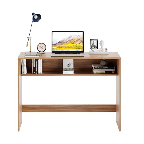 Burlyworth - طاولة دراسة خشبية مصممة بعناية، محطة عمل، للكمبيوتر، اللاب توب، طاولة مكتب العمل عن بعد، مكتب ألعاب مع مساحة تخزين من بيرلي ورث، حجم قياسي، 80 سم (خشب الساج)