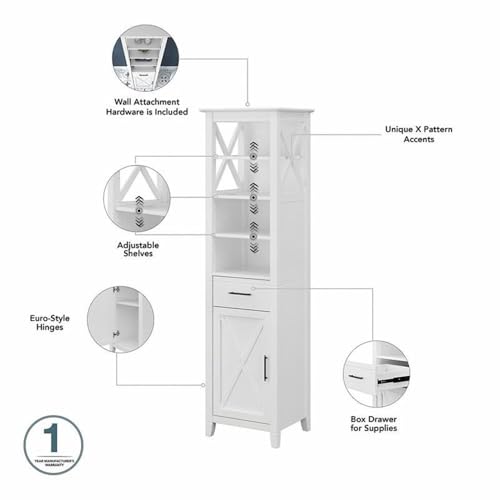 Bush Home - خزانة كتب طويلة ضيقة كي ويست للحمام من بوش فيرنتشر - أبيض رمادي، خشب
