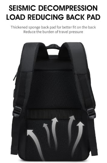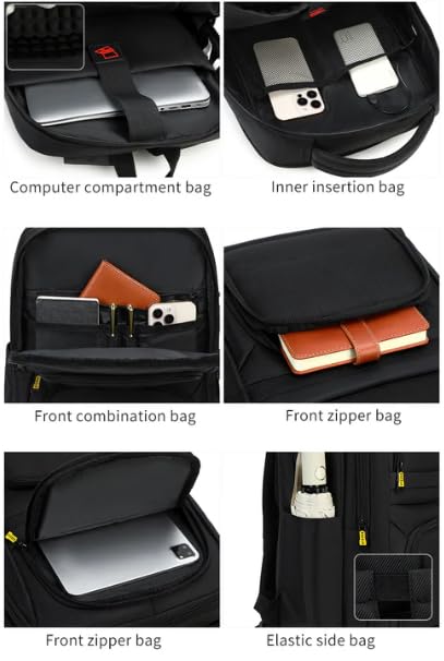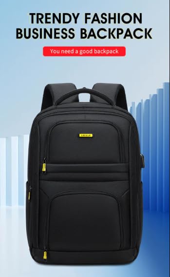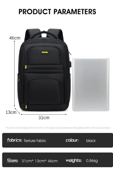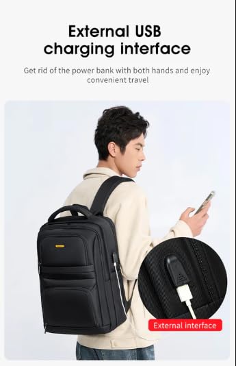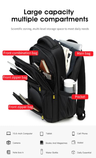 شنطة ظهر للعمل للاب توب مقاس 15.6 بوصة، منفذ شحن USB، مقاومة للماء، مساحات تخزين متعددة، لون أسود