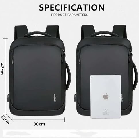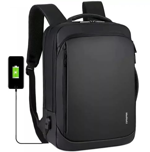 شنطة ظهر للاب توب للاعمال مع منفذ شحن USB، لون اسود، مقاومة للماء