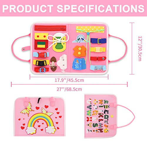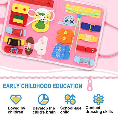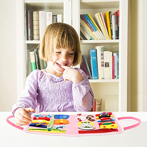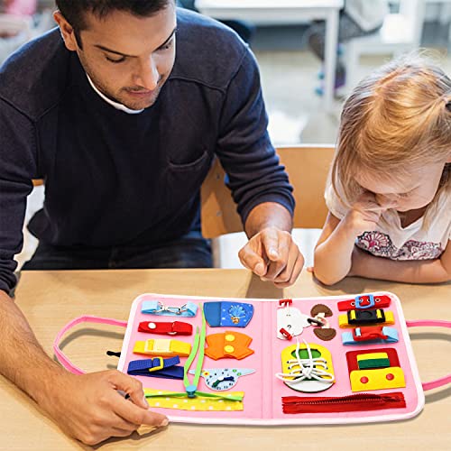 Ksasky - العاب مونتيسوري من بيزي بورد للاطفال الصغار، العاب لوحية حسية لأنشطة ما قبل المدرسة، العاب تعليمية لتعلم مهارات اللباس الاساسية، العاب سفر للاطفال الصغار بعمر 1 2 3 4 سنوات للاولاد والبنات (زهري)