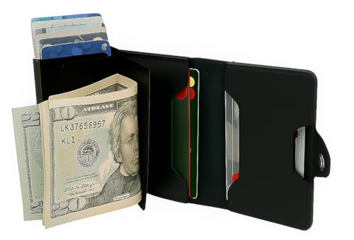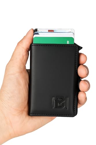 Generic - محفظة ذكية من الجلد الطبيعي من بيزي مين (حجب تقنية تحديد الهوية بموجات الراديو) اسود ميدنايت محفظة جلد طبيعي ذكيه مقاومة لسرقه بيانات البطاقات الائتمانية