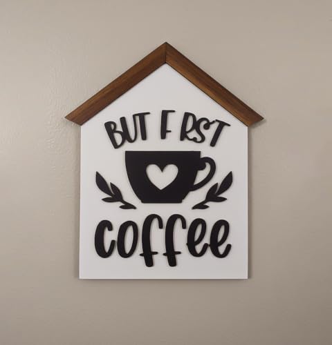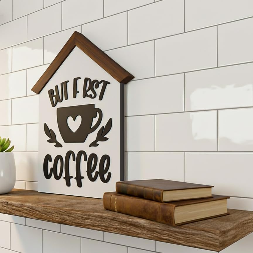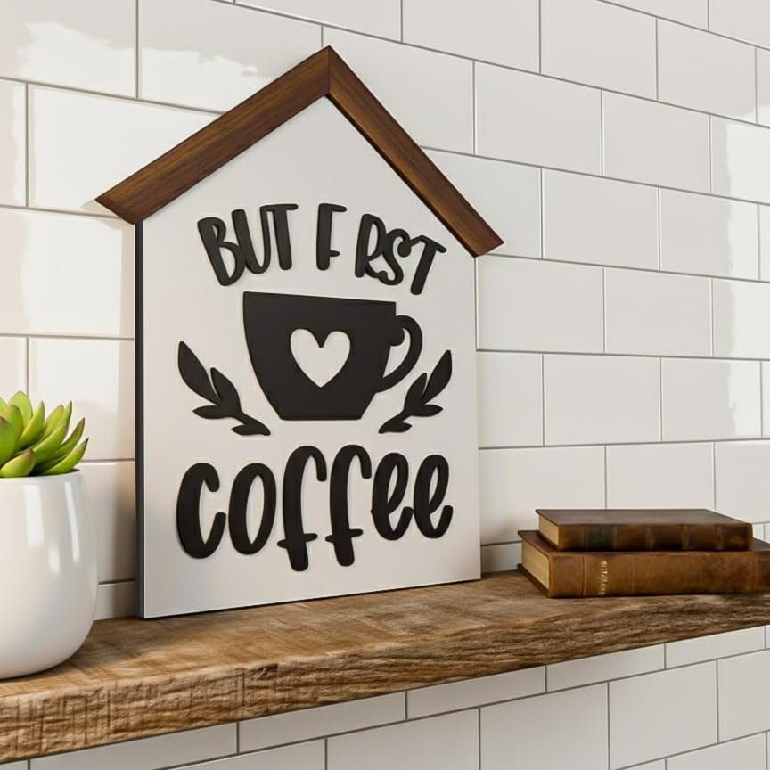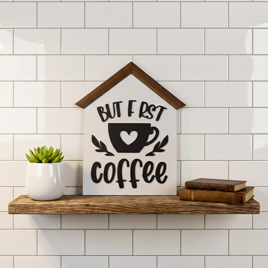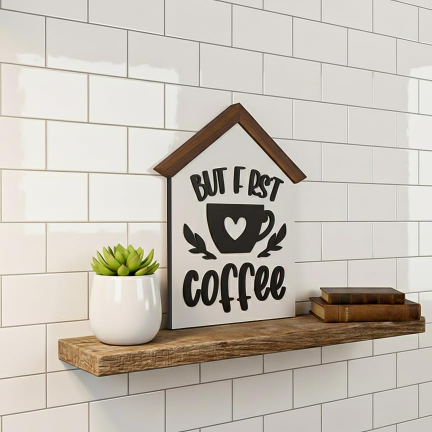 Generic - تبلوه خشبي بتصميم مميز بعبارة But First Coffee بمقاس 33x23 مصنوع من خشب MDF أسباني فاخر بسماكة 10 ملم مع ستاند ثابت ليضفي الي منزلك جمال واناقة و روحانية