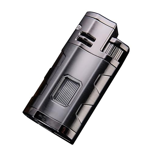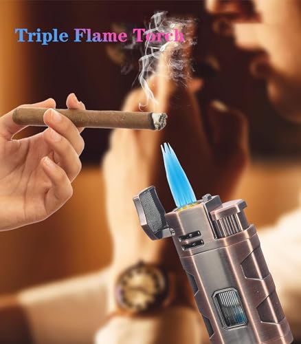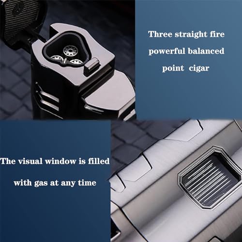IrAyz - ولاعة شعلة بوتان زرقاء ثلاثية اللهب قابلة لإعادة الملء وقابلة للتعديل مع نافذة هواء مرئية وثقب سيجار