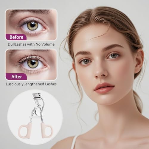 BUTBU - أداة تجعيد رموش احترافية للنساء لرفع وتجعيد الرموش بلطف مع 10 وسادات بديلة من السيليكون و5 فرش من بوتبو، لون وردي