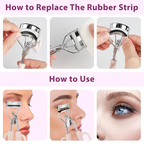 - 【سهل الاستخدام】استخدمي أداة تجعيد الرموش الخاصة بنا قبل وضع الماسكارا لصنع مكياج طبيعي وكثيف بسهولة. أولاً، افتحي عينيك جيدًا، ضعي وسادة مكواة التجعيد على خط الرموش السفلية، وأمسكي المقبض واضغطي بلطف. امسكي الوضع لبضع ثوان ثم افتحي أداة التجعيد ببطء لتحرير الرموش. كرري هذه العملية من الجذور إلى الأطراف للحصول على تجعيد أكثر تماسكًا.