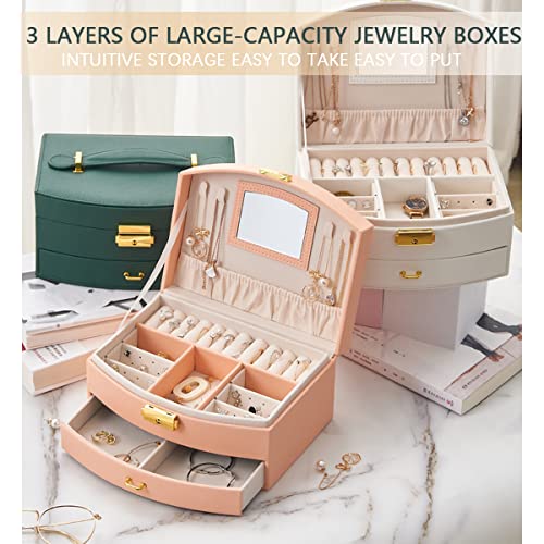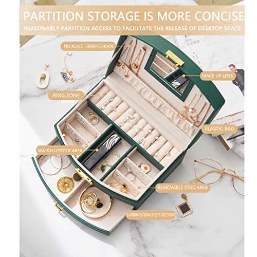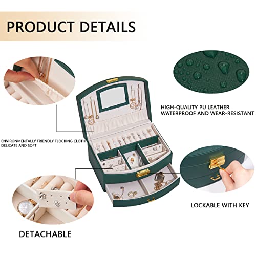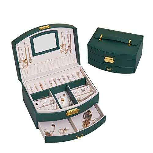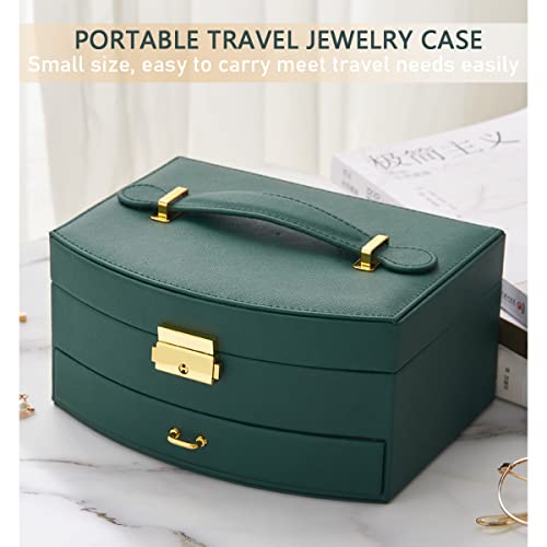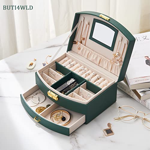 BUTI4WLD - منظم مجوهرات صندوق من طبقتين مع قفل صناديق من جلد البولي يوريثين للنساء حقيبة للسفر محمول لعرض الاقراط والاساور والخواتم اخضر
