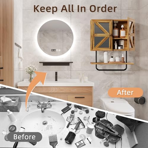 - 【توفير مساحة مذهلة】تجمع خزانة الحائط للحمام بين الوظائف العملية والنمط الريفي، لا تضيف مساحة تخزين إضافية للحفاظ على أغراضك مرتبة فحسب، بل تمتزج أيضًا مع أنماط الديكور المختلفة لمنزلك
