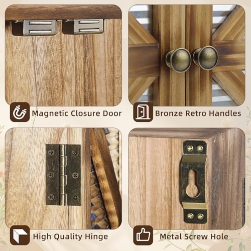 - 【 خزانة حائط ريفية】 خزانة الحائط الصغيرة مصنوعة من الخشب الصلب المتين، ويمكن أن تدوم لفترة طويلة. تصميم بأبواب على شكل حظيرة مدمجة معدنية مجلفنة مموجة ومقابض برونزية كلاسيكية، مما يجعل خزانة التخزين المثبتة على الحائط أكثر تفردًا.