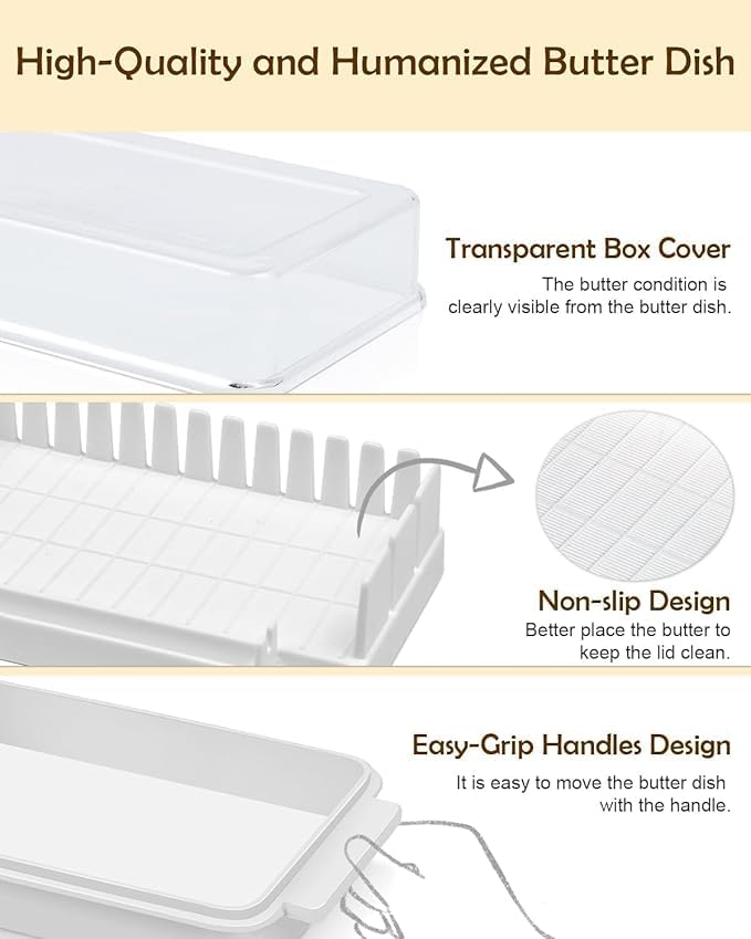 - استمتع بالزبدة الطازجة لفترة أطول. يحمي التصميم المغطى الزبدة داخل الثلاجة، لذلك تبقى ناعمة ونظيفة وجاهزة للاستخدام كلما احتجت إليها.
