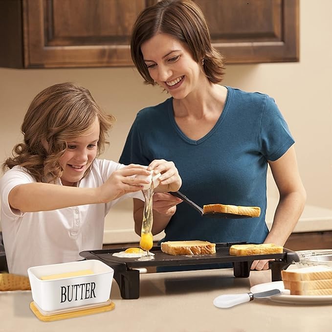 Generic - طبق زبدة مع قطاعة - وعاء زبدة متعدد الأغراض مع غطاء خشبي محكم الإغلاق، صندوق زبدة مع دليل تقطيع، حاوية للجبن والزبدة للمطبخ
