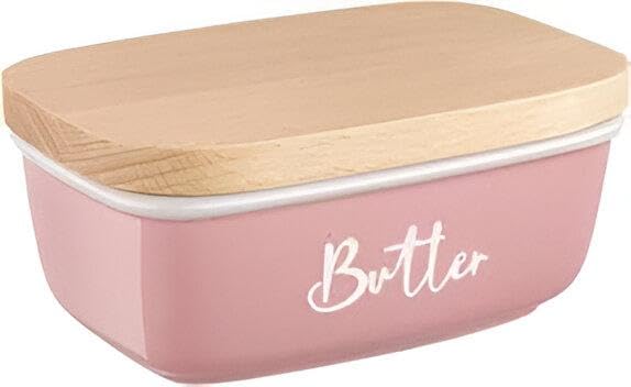 Generic - حافظة الزبدة - حافظة زبدة سيراميك جميلة مع غطاء خشبي، مثالية لإضافة لمسة من السحر الريفي الحديث إلى مطبخك، هدية رائعة لعشاق الطعام وطهاة المنزل