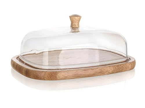- المقبض الخشبي الموجود أعلى غطاء الأكريليك ليس فقط ميزة تصميم ولكنه يضيف الراحة أيضًا. يسمح بسهولة التعامل عند فتح الطبق وإغلاقه، مما يضمن لك الوصول بسرعة إلى الزبدة أو الجبن عند الحاجة، مما يعزز تجربة مطبخك بشكل عام.