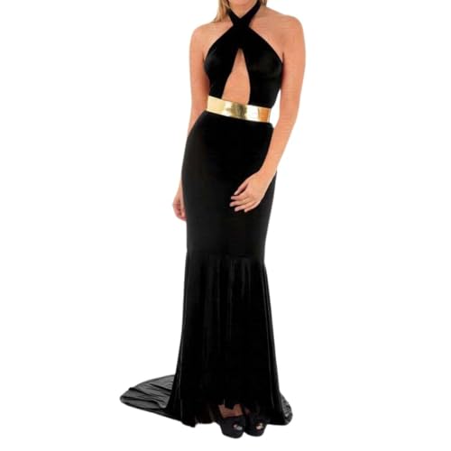 Generic - فستان لانجيرى طويل بحزام مفتوح من الامام الزبدة لون اسود للنساء