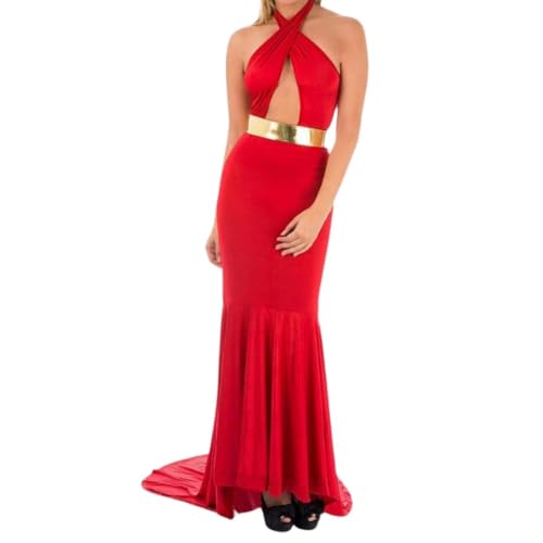 Generic - فستان لانجيرى طويل بحزام مفتوح من الامام الزبدة لون احمر للنساء