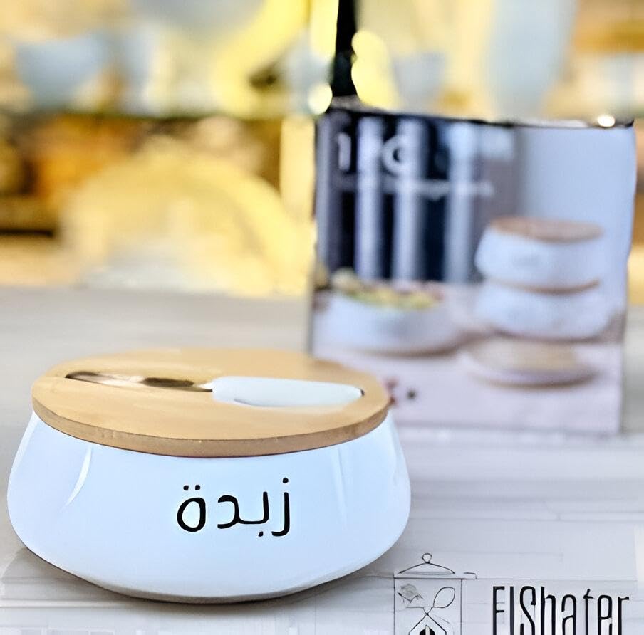 - صُمم طبق الزبدة هذا من أجل التطبيق العملي، ويحتوي على غطاء خشبي مع فتحة تعليق لتقديم أنيق وتخزين آمن. سعتها الكبيرة مثالية للحفاظ على الزبدة طازجة ويمكن الوصول إليها، سواء في المنزل أو أثناء التجمعات.