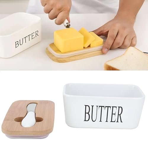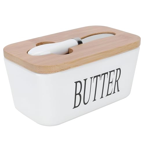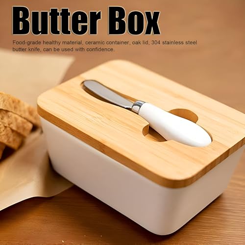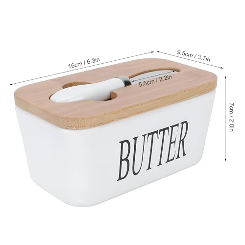 Generic - صندوق تخزين الزبدة، صندوق تخزين زبدة مقاس 16 × 9.5 × 7 سم، مزود بغطاء وسكين من الخشب الطبيعي، مما يضمن بقاء الزبدة طازجة ومريحة ومعروضة بشكل جميل 1 قطعة