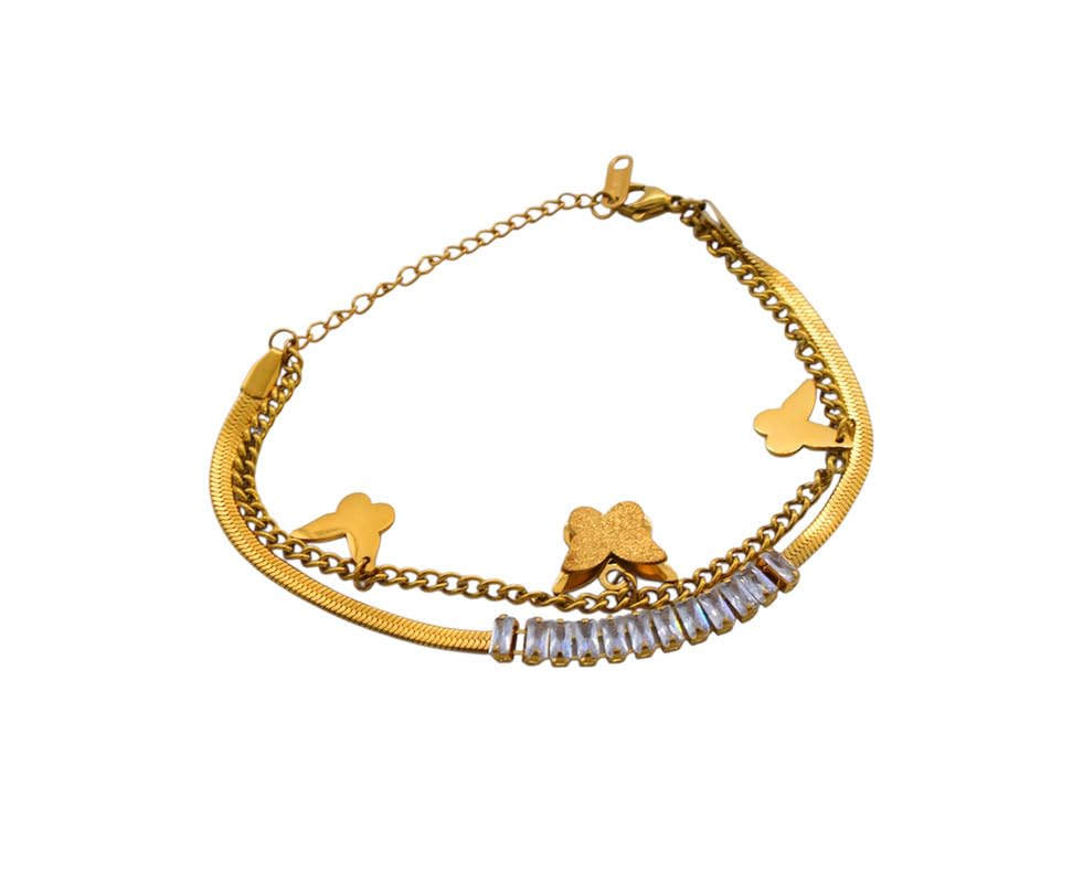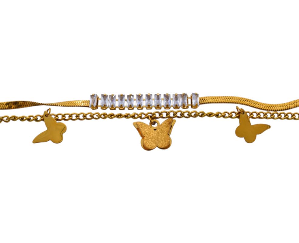 Generic - سوار بسلسلة مزدوجة من الستانلس ستيل للنساء من باترفلايز تشارمز - ذهبي