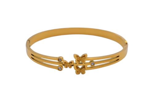 Generic - سوار ستانلس ستيل مطلي بالذهب على شكل فراشات - ذهبي