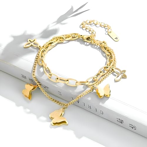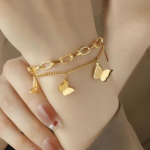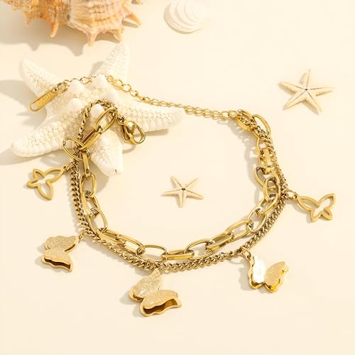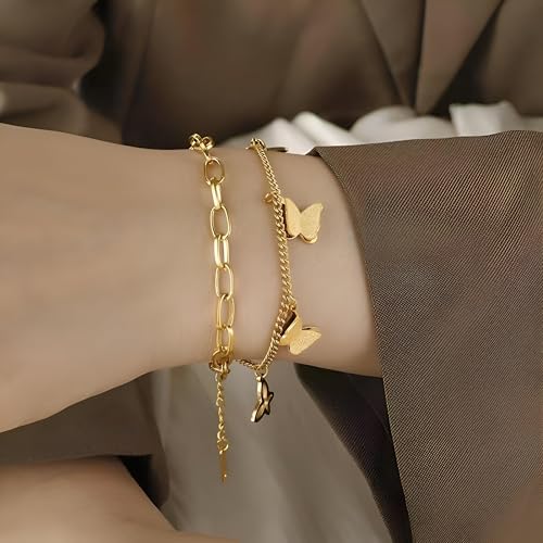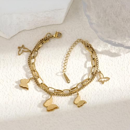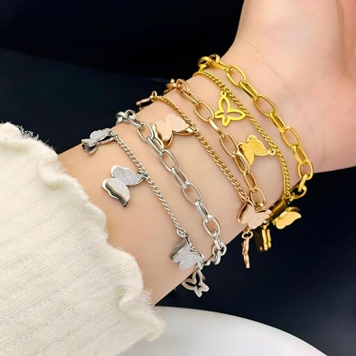 Generic - اساور بدلاية على شكل فراشة - قطعة جميلة من الستانلس ستيل 316L مع قلادات على شكل فراشة، تقدم اكسسوارًا راقيًا للنساء اللواتي يبحثن عن الارتقاء بأسلوبهن اليومي.
