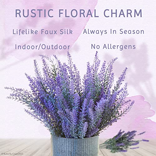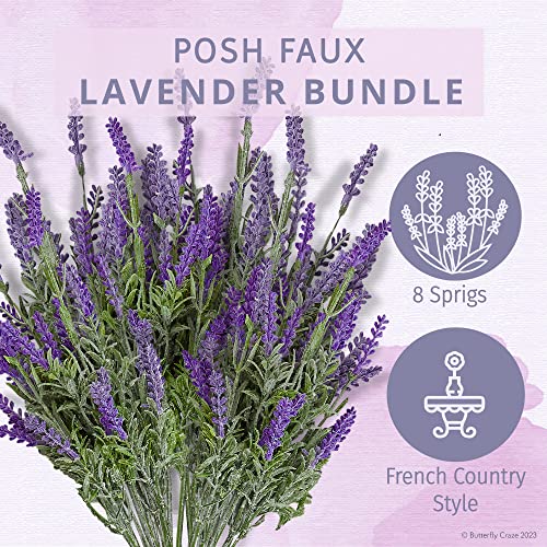 Butterfly Craze - نباتات لافندر صناعية نابضة بالحياة - مجموعة من 8 قطع من بترفلاي كريز، مثالية للحرف اليدوية وديكور المنزل وحفلات الزفاف، يمكن استخدامها مع زهور مزيفة/مجففة مثل الورود الأرجوانية، زهور حرير صناعي شبه