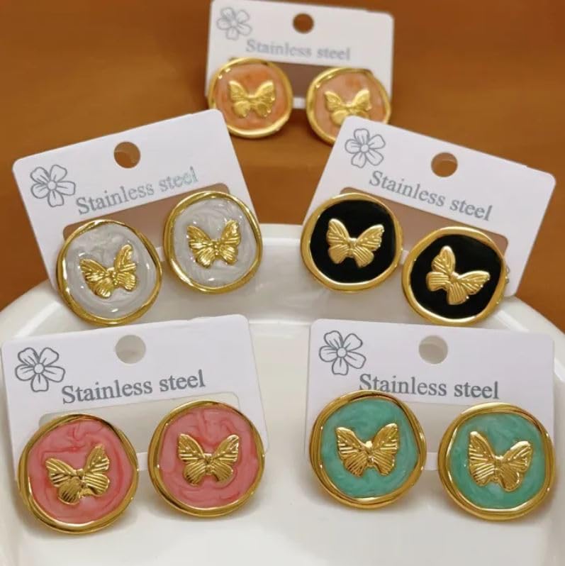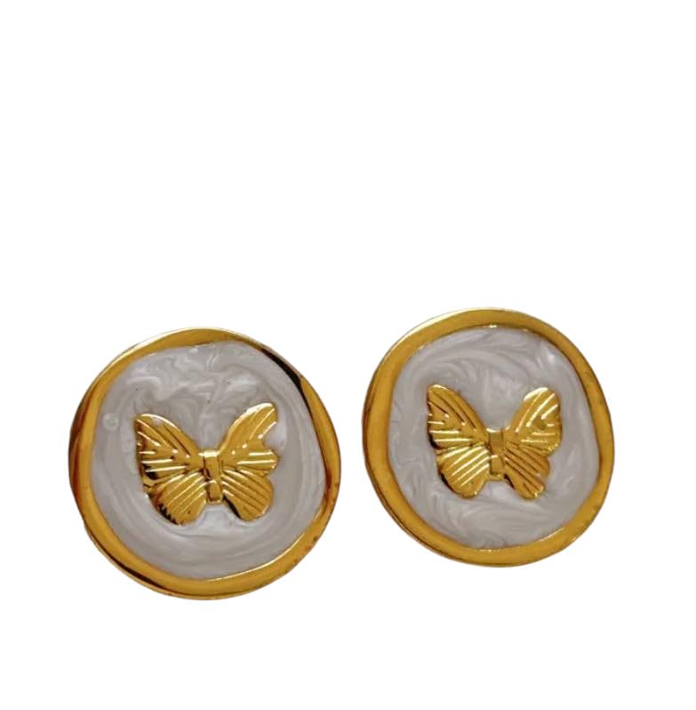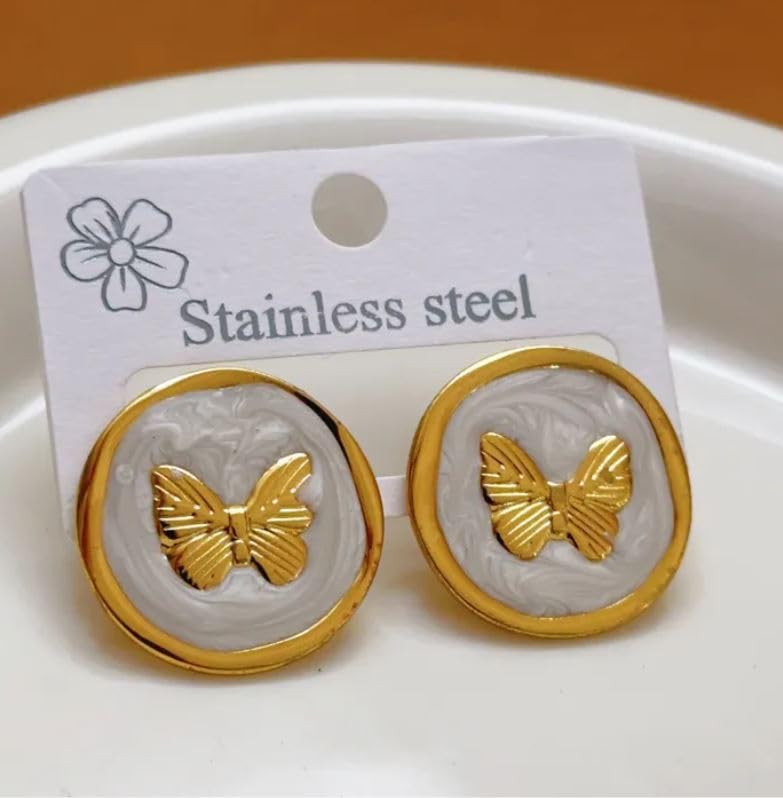 Generic - اقراط على شكل فراشة، اطار دائري من الستانلس ستيل بلون ذهبي