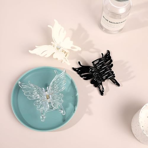 Generic - مشابك شعر على شكل فراشة كبيرة الحجم ومذهلة لتصفيفات ضفائر الشعر توفر تثبيتًا استثنائيًا ومظهرًا أنيقًا للنساء (3 قطع باللون الموضح في الصور)