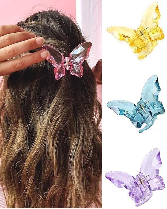 - ٢) تصميم عصري: مشابك فراشة شفافة بتصميم ثلاثي الأبعاد تضيف لمسة أنيقة للشعر