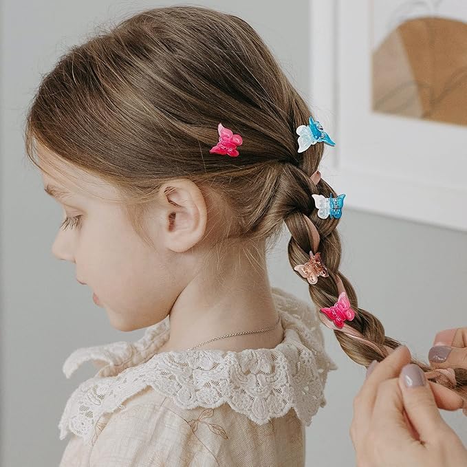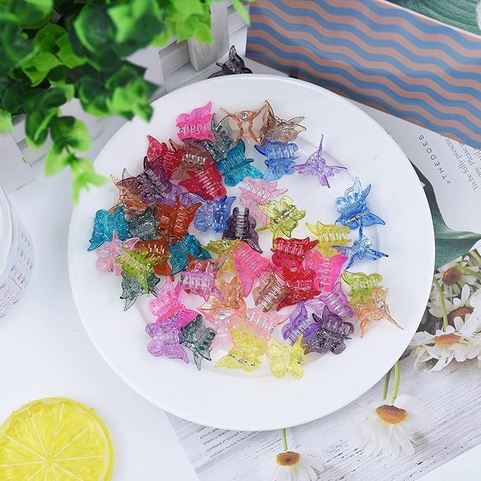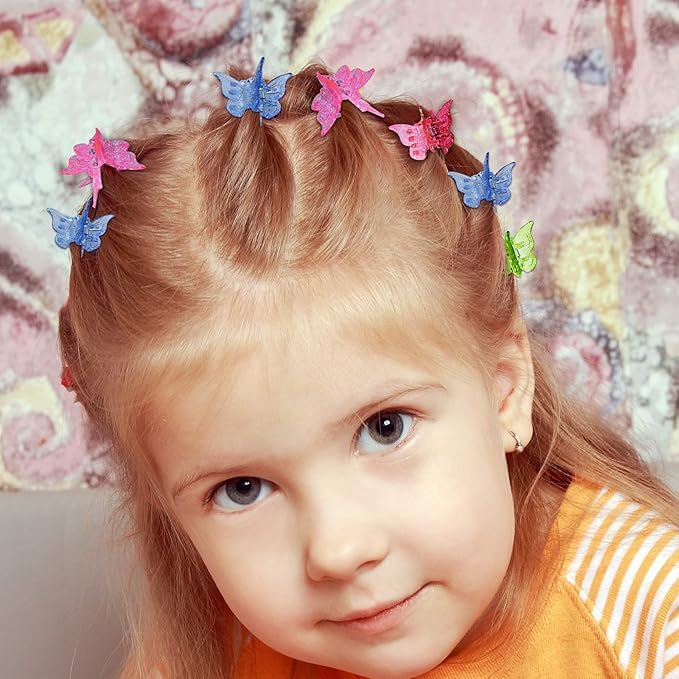 - ١) مجموعة متكاملة: تتضمن 2 مشابك شعر على شكل فراشة بألوان جذابة
