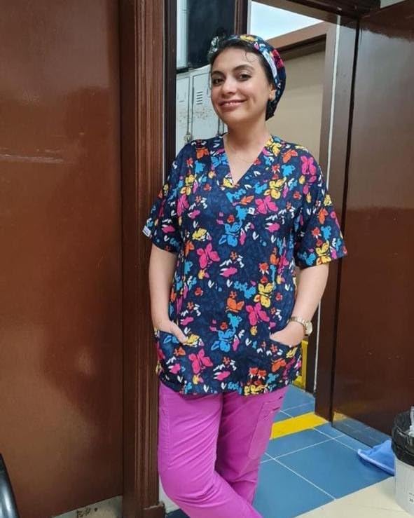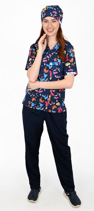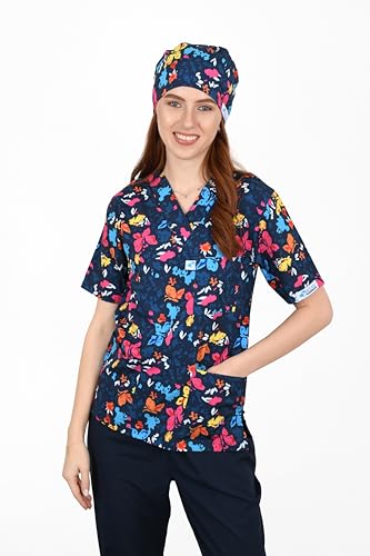 Resan Medical wear - مقشر طبي مطبوع عليه فراشة للمستشفى للجنسين - قميص طبي للجراحة - اكمام قصيرة - زي طبي (ازرق ، مقاس S)