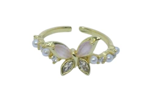 Generic - خاتم مفتوح من الستانلس ستيل بتصميم فراشة - ذهبي