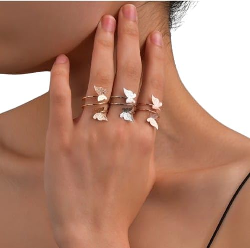 Generic - خاتم مفتوح بشكل فراشة للنساء والبنات المراهقات، خاتم أصبع بتصميم أنيق قابل للتعديل للصديقة والزفاف وأعياد الميلاد