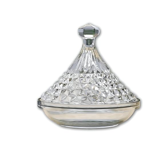 - مصنوعة من زجاج كريستالي شفاف عالي الجودة يعكس الضوء بشكل جميل، مما يعزز تألق محتوياته.