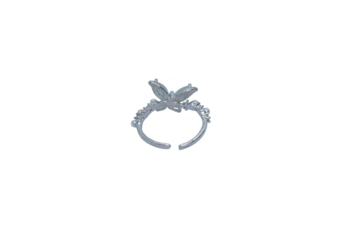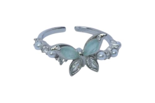 Generic - خاتم مفتوح من الستانلس ستيل بتصميم فراشة لؤلؤ - فضي