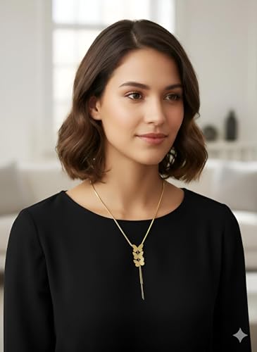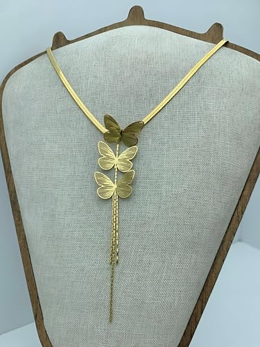 Generic - قلادة على شكل فراشة - سلسلة طويلة خفيفة الوزن مع شراشيب متدفقة، تصميم قابل للتعديل للارتداء الكاجوال والرسمي للنساء.